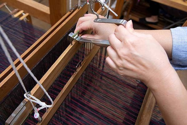 紋様は紅白の浮模様という伝統的な木綿織のスタイルも保ちながらも天然染料で染色した絹糸や、加工糸を使った色鮮やかな製品も作っています