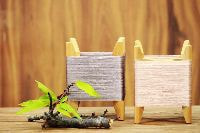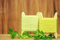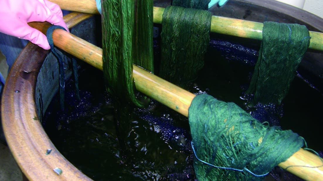 春・秋に茎葉を刈り製藍された藍玉を染色に使います。主に本部町伊豆味で栽培さ れています。甕に藍玉と泡盛や水飴などの養分とアルカリ剤を加え発酵建てをおこない染色します。